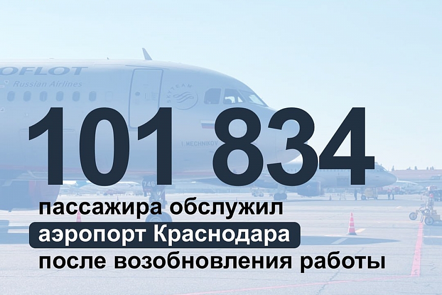 Аэропорт Краснодара за месяц с возобновления полетов обслужил более 100 тыс. пассажиров