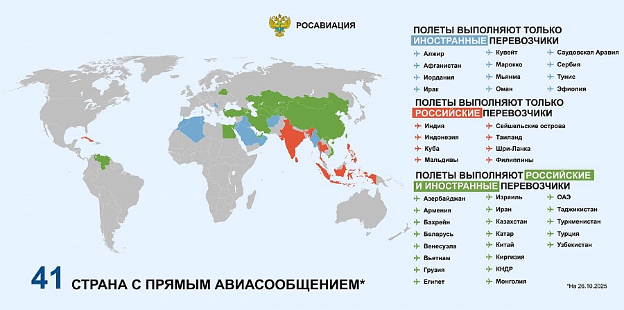 В общей сложности, у России сейчас есть прямое авиасообщение с 41 зарубежной страной.