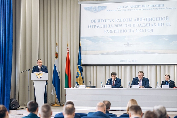 Как отмечается в сообщении министерства, итоги работы гражданской авиации Беларуси за 2025 год подвели на коллегии Департамента по авиации Минтранса республики. Заседание прошло под председательством замминистра транспорта и коммуникаций Сергея Дубины. С основным докладом выступил директор Департамента по авиации Игорь Голуб.